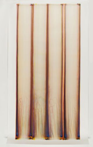Marita Damkrögers kleine und sehr große Aquarelle auf Papier, loten den Raum aus. Dafür nutzt sie in den dynamischen Bildern Reihung, Rhythmus und Wiederholung. Dabei steht die Linie am Anfang ihrer Kompositionen.